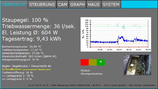 Diese Anlage haben unsere Jugendlichen unter fachlicher Anleitung und mit freundlicher Unterstützung des Turbinenherstellers OSSBERGER GmbH + Co. KG und des Generatorherstellers Johannes Hübner - Fabrik elektrischer Maschinen GmbH restauriert und wieder ans Netz gebracht. Nach vielen Jahren Stillstand war dort einiges zu tun. Wir haben die Anlage derart umgebaut, dass sie im vollautomatischen Betrieb arbeitet. Die Steuerung und Software haben wir hierbei im Rahmen unserer Ausbildungsarbeit selber entwickelt.