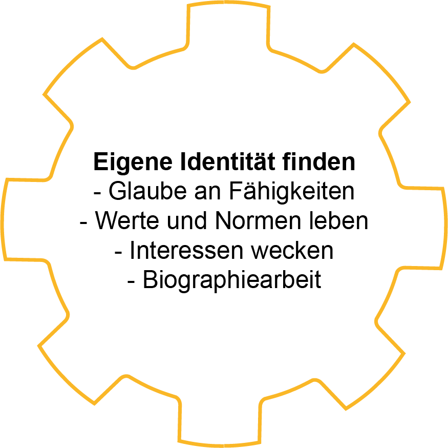 • Wir bauen auf den eigenen, messbaren und aufrufbaren Willen des Jugendlichen.